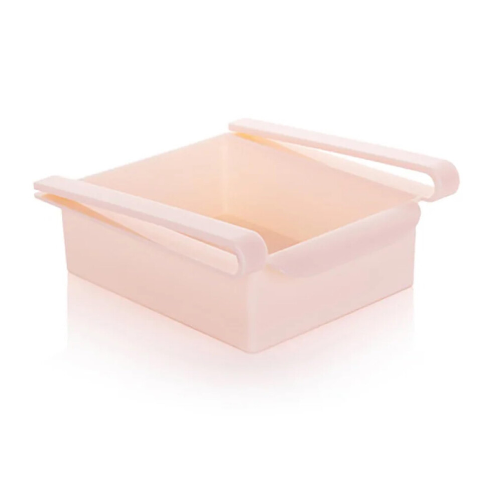 Fridge Organiser Sliding Drawer Clear Freezer Storage Box Refrigerator Storage Rack Space Saver Pink