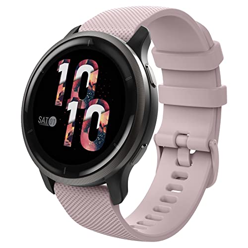 Vobafe 20mm Strap for Garmin Vivoactive 3/3 Music/Venu/Venu 2 Plus/sq/sq 2/Forerunner 245/645/55, Soft Silicone Watch Band Replacement for Garmin Vivomove HR/Instinct 2S/Fenix 7S, SandPink