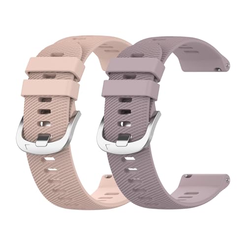 Garmcool 2 Pack 18mm Watch Strap Compatible for Garmin Venu 2S/Venu 3S/Vivoactive 4S/Forerunner 255S/Vivomove 3S, Silicone Sport Straps Pink, Lilac for Women Men (Strap Only)