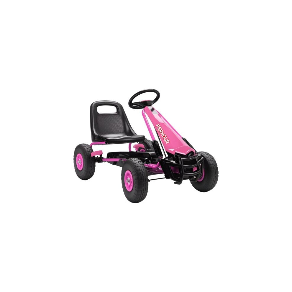 Kids Pedal Go Kart, with Adjustable Seat, Inflatable Tyres - Pink