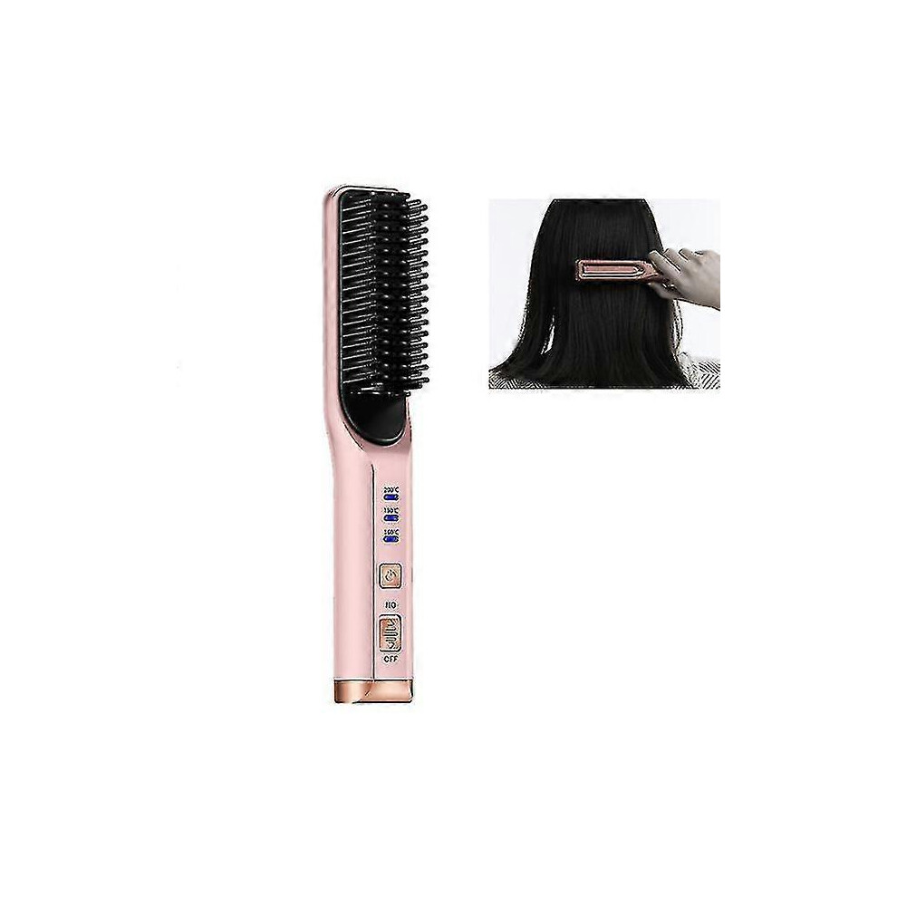 (pink) Portable Hair Straightener Brush With 3-speed Temperature Control