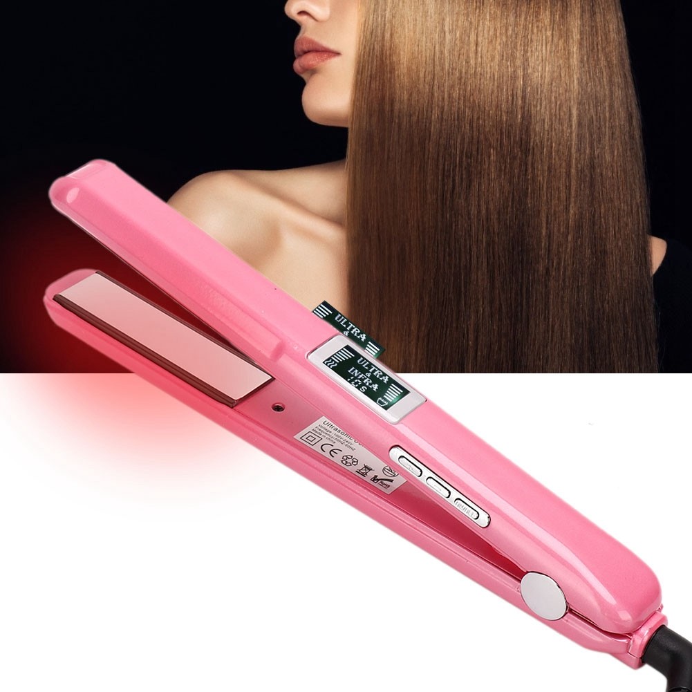 Pink Ultrasonic Infrared Hair Straightener Cold Wave Hair Straighten Curling HOT