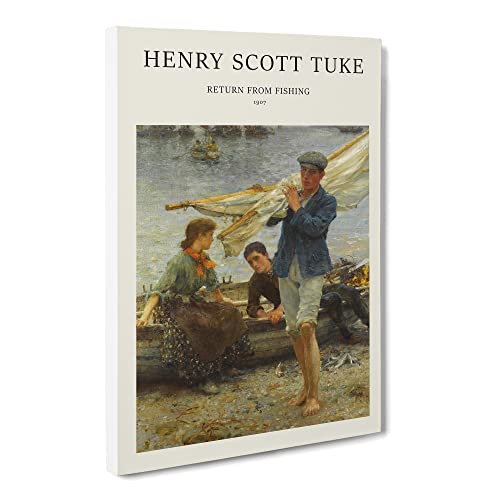 Returning By Henry Scott Tuke Exhibition Museum Painting Canvas Wall Art Print Ready to Hang, Framed Picture for Living Room Bedroom Home Office Décor, 20x14 Inch (50x35 cm)