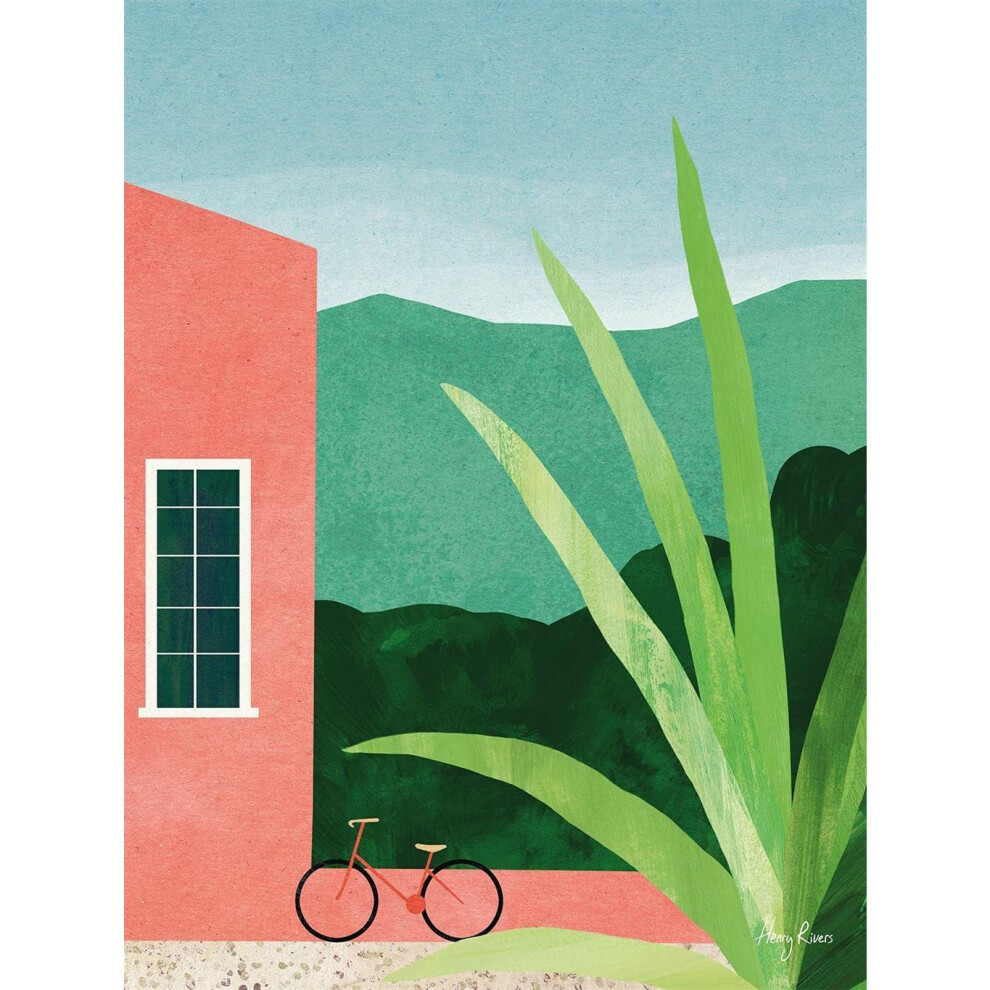 (50cm x 40cm x 0.21cm, Green/Pink/Blue) Henry Rivers Bicycle, Pink House Print
