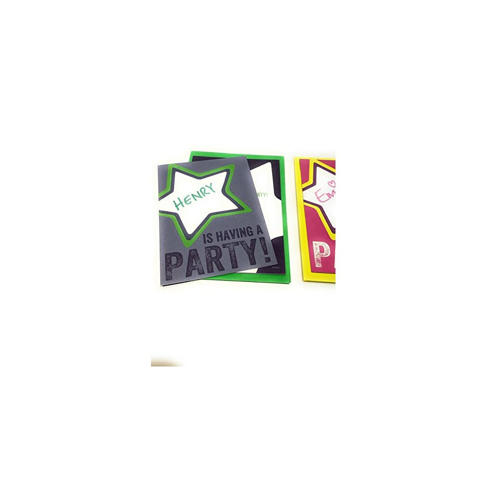 WRAPT 10 PINK KIDS BIRTHDAY INVITATIONS, Girls Party Invitations, Fill in the Name in the Star Birthday Party Invites Cards with Yellow Envelopes, 10 pack set
