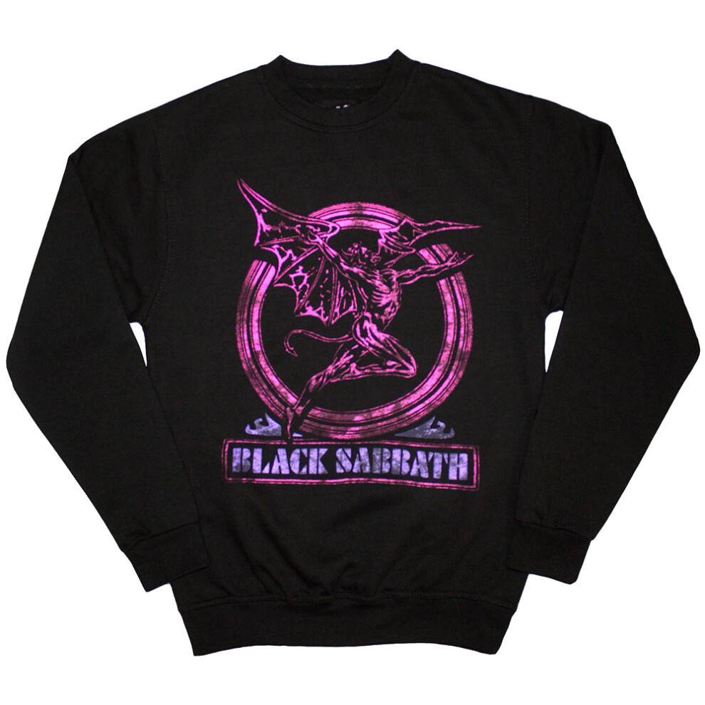 (S, Black) Black Sabbath Neon Pink Henry Oversized Sweatshirt