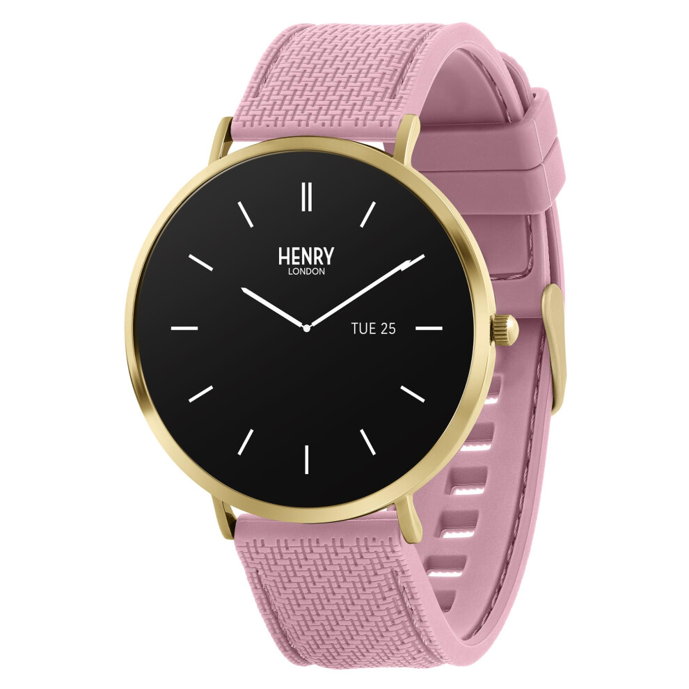 Henry London Amoled Fitness Smart Watch for Women with Cobweb Pink Silicone Strap