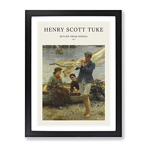 Returning By Henry Scott Tuke Exhibition Museum Painting Framed Wall Art Print, Ready to Hang Picture for Living Room Bedroom Home Office Décor, Black A2 (64 x 46 cm)
