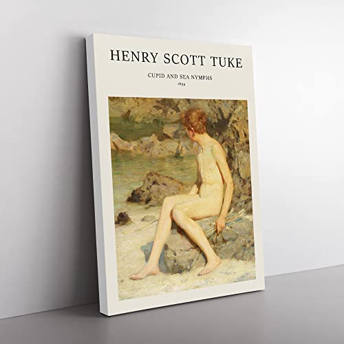 Cupid And Sea Nymphs By Henry Scott Tuke Exhibition Museum Painting Canvas Wall Art Print Ready to Hang, Framed Picture for Living Room Bedroom Home Office Décor, 76x50 cm (30x20 Inch)