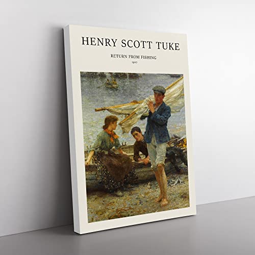 Returning By Henry Scott Tuke Exhibition Museum Painting Canvas Wall Art Print Ready to Hang, Framed Picture for Living Room Bedroom Home Office Décor, 76x50 cm (30x20 Inch)
