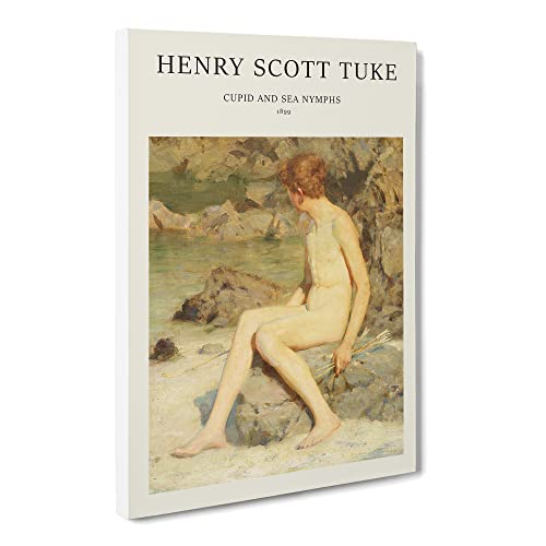 Cupid And Sea Nymphs By Henry Scott Tuke Exhibition Museum Painting Canvas Wall Art Print Ready to Hang, Framed Picture for Living Room Bedroom Home Office Décor, 20x14 Inch (50x35 cm)