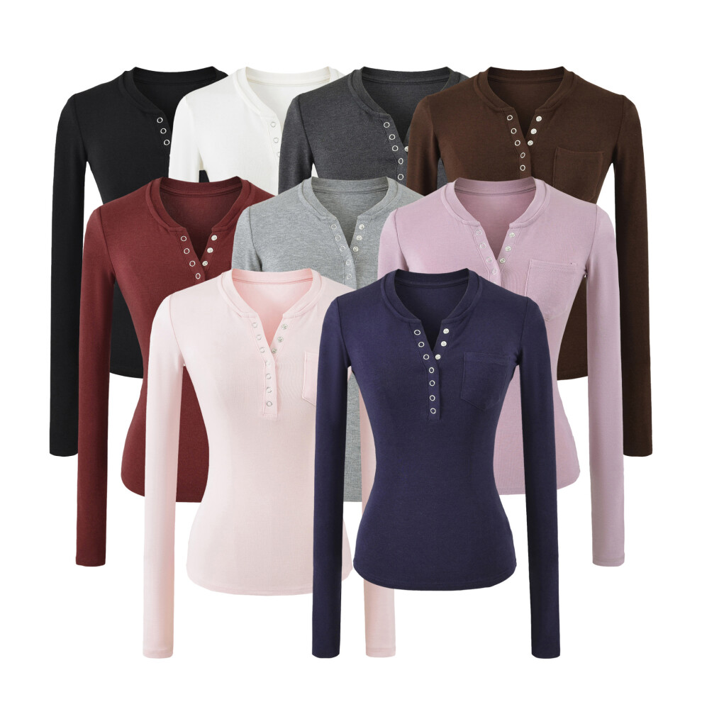 GRACE KARIN Womens Long Sleeve Autumn Winter Blouses Elegante Henry V Neck Shirt Going Out Tops Dark Pink M