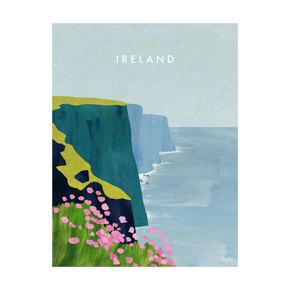 (50cm x 40cm, Blue/Green/Pink) Henry Rivers Ireland Cliffs Of Moher Print