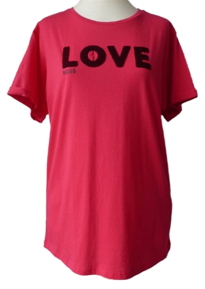 Hugo Boss Sequin 'love' Slogan T-shirt Dark Pink Size: M