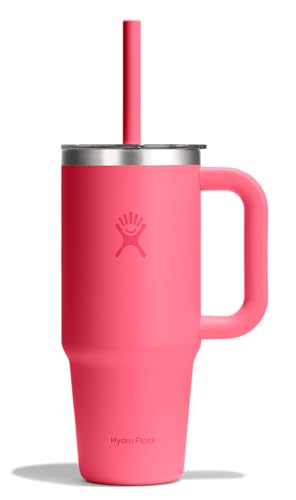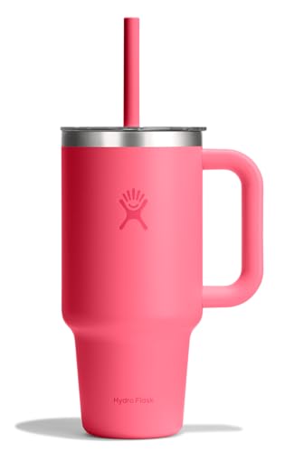 Hydro Flask – Travel Tumbler 936 ml (32 oz) with Clear Press-in Straw Lid – Stainless Steel – Double Wall Vacuum Insulated – Splash Resistant – Popstar Pink