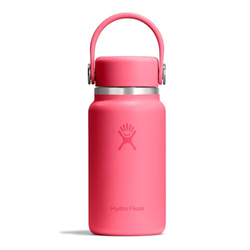 (Pink) Hydro Flask Stainless Steel Wide Mouth Water Bottle with Flex Straw Lid and Double-Wall Vacuum Insulation