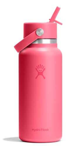 Hydro Flask – Wide Flex Straw Cap 946 ml (32 oz) Bottle – Stainless Steel, Leakproof Straw, Dishwasher Safe – Insulated Cold 24 Hrs – Wide Mouth, Ice Cube Friendly – Popstar Pink