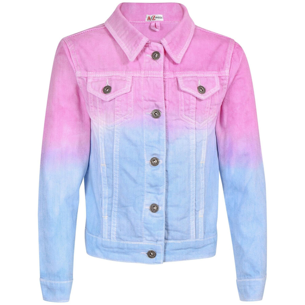 (11-12 Years, Pink) Kids Girls Jackets Denim Style Fashion Jean Jacket