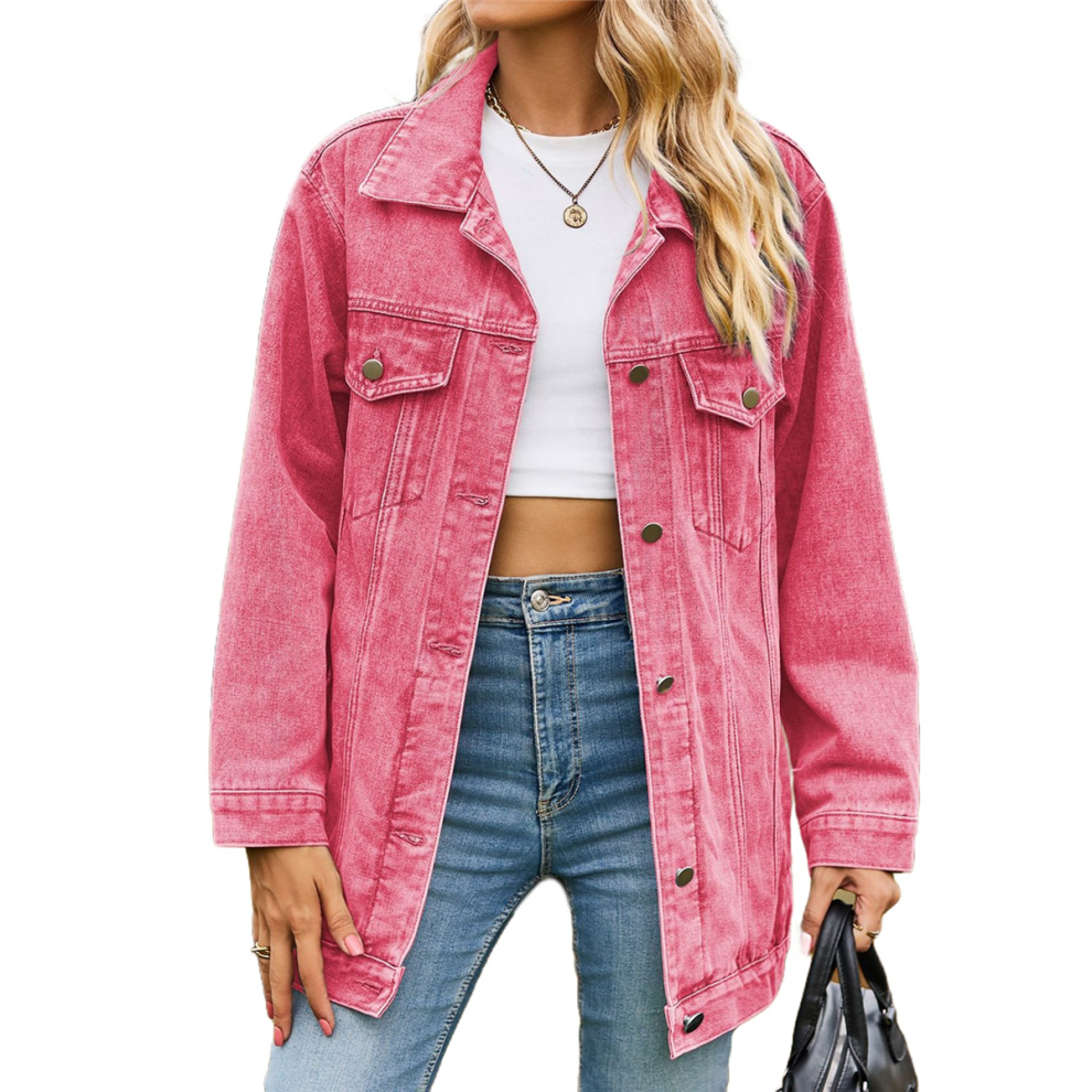 Roskiky Spring Womens Jacket Pink Jean Jacket Jackets For Women Uk Women'S Pink Denim Jackets Womens Jean Jackets Pink Size Large fits Size 16 to Size 18