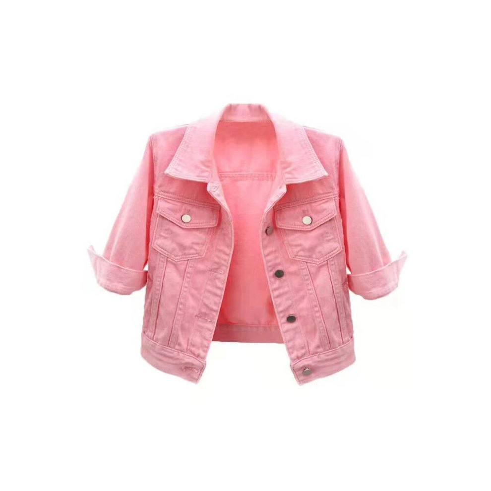 (M UK10/12, Pink) Womens Denim Jacket Lady Coat Color Plain Top Button Up Ladies Short Jean Top