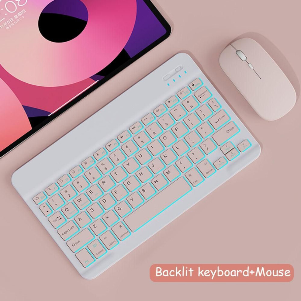 Backlit Multilingual Wireless Keyboard Mouse Compatible With Android Tablet Phone PC Keyboard(Pink-And Mouse)