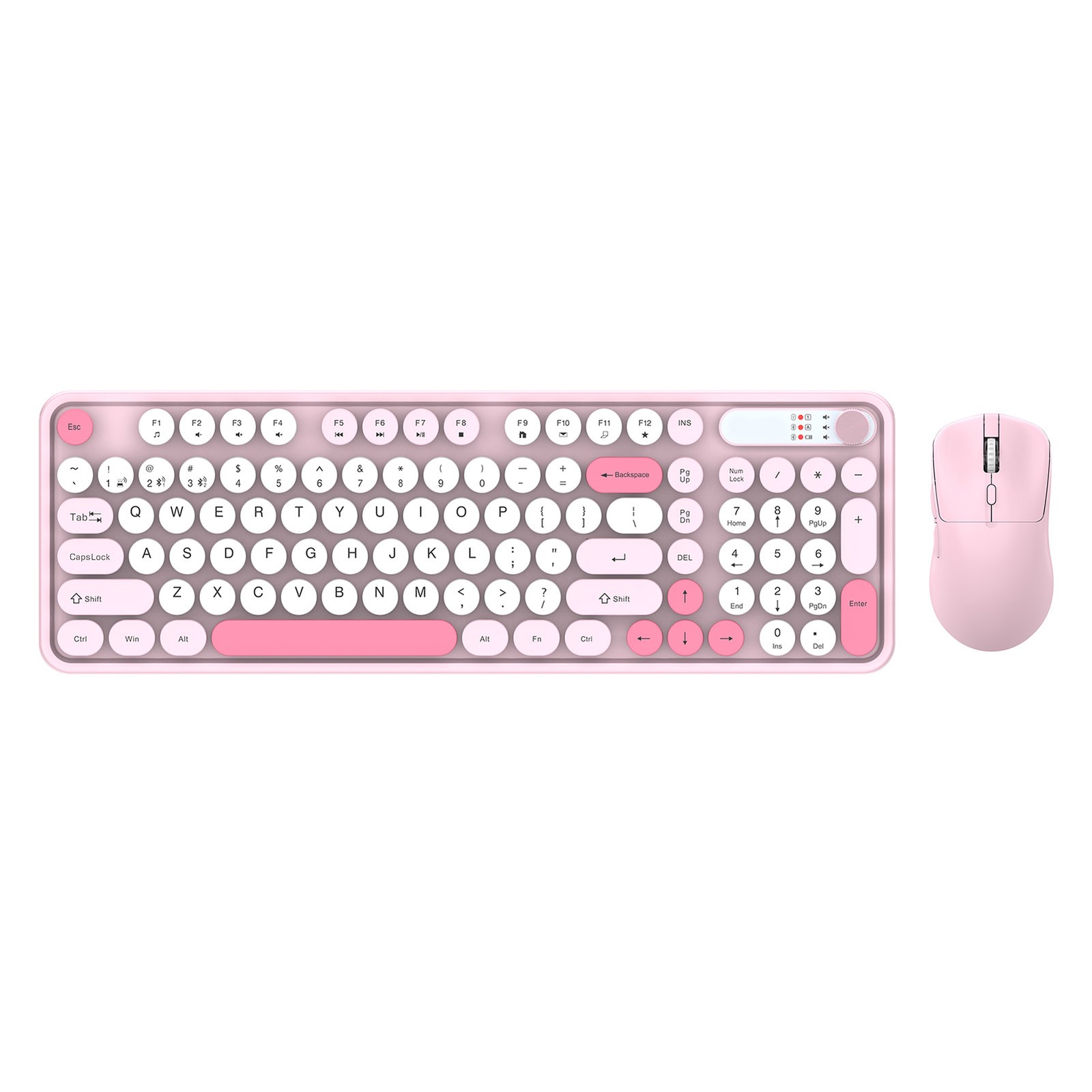 Jectse Pink Wireless Keyboard and Mouse Combo, 2.4G Bluetooth Dual Mode, Detachable Round Keycaps, 85 Keys Keyboard, Battery Powered, for Laptop/PC/Office, Cute Candy Color