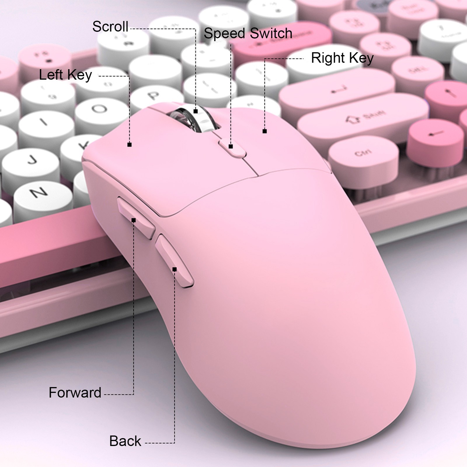 Keyboard Mouse Combo Clicky Keyboard Set Wireless Cover Retro Color Covering Wireless Keyboard and Mouse Purple (Pink mixed color keyboard and mouse set)