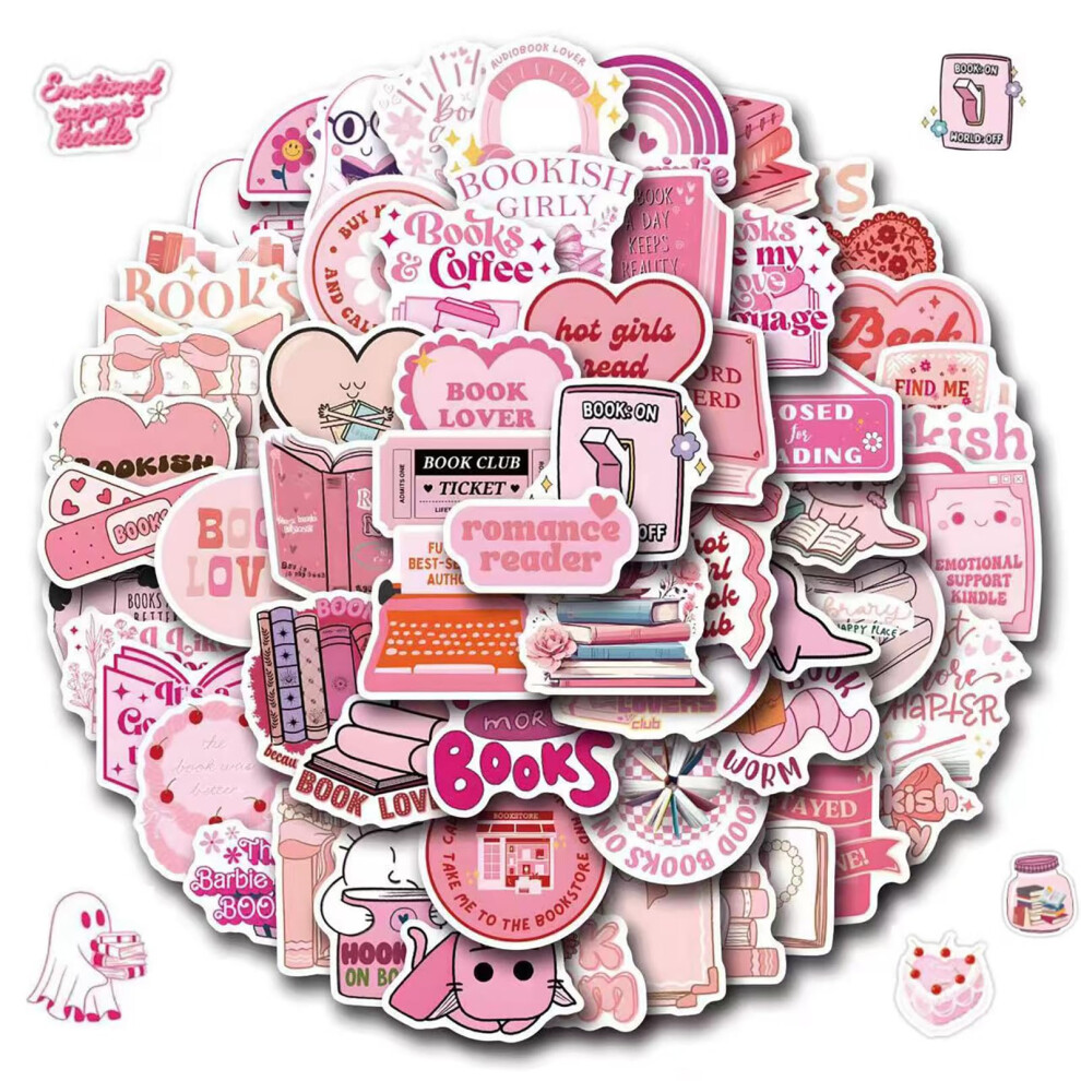 Zoruam Bookish Pink Cartoon Waterproof Reusable Stickers, 120pcs for Kindle, Scrapbook, Water Bottles, Laptops (120 Pink)