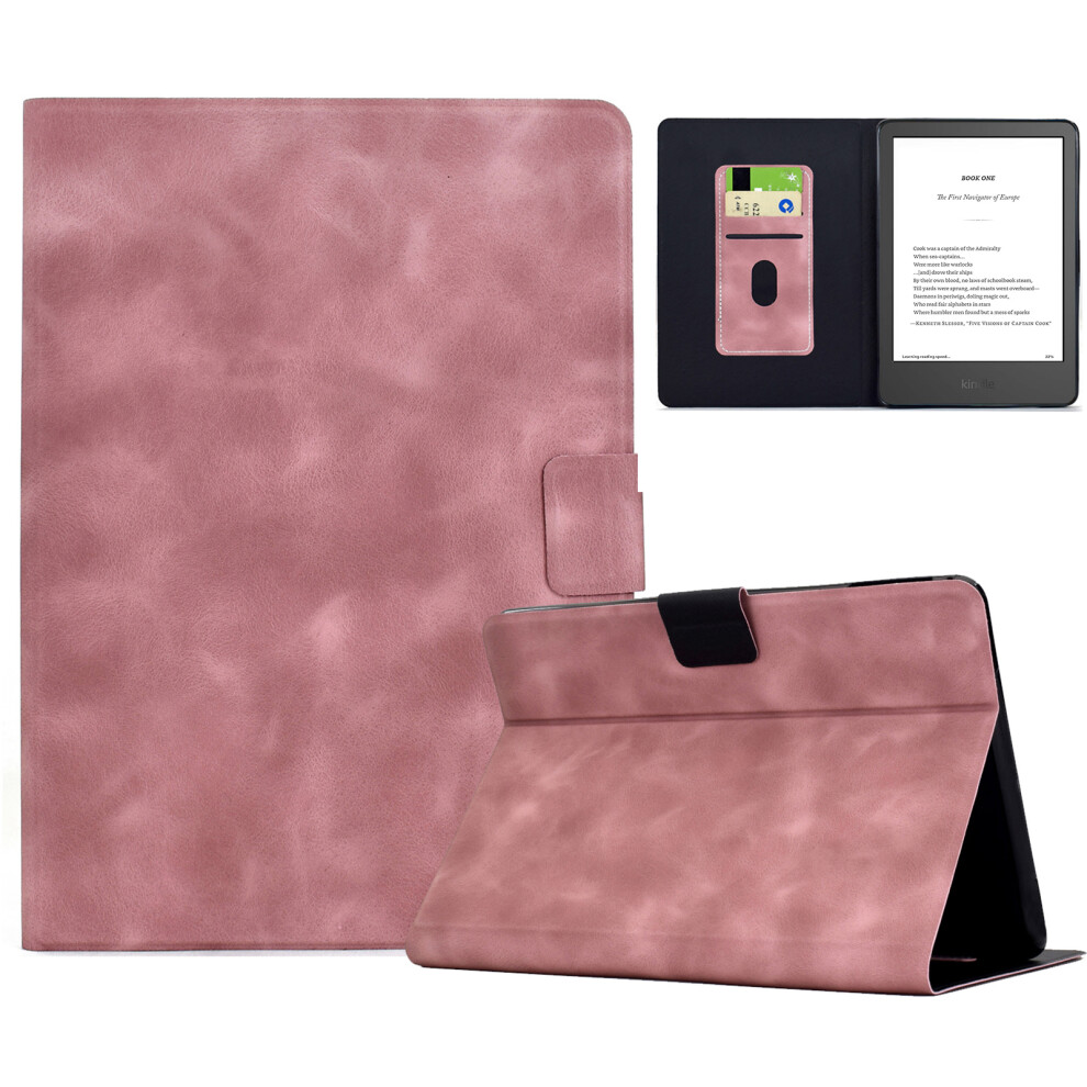 (Pink) For Amazon Kindle 6" (2024) / (2022) Case PU Leather Tablet Cover with Card Slots