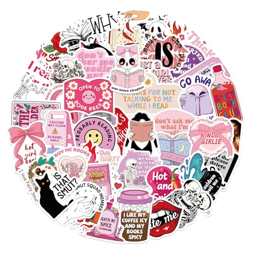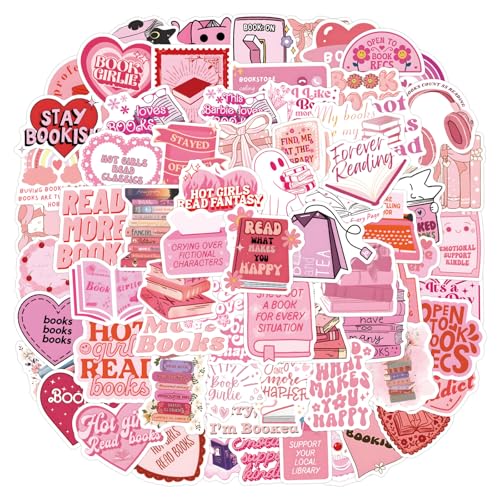 50Pcs Pink Bookish Stickers, Waterproof Vinyl Aesthetic Book Stickers for Kindle, Booktok Reading Sticker, Cute Sticker Decals for Laptop Scrapbook Journal (Bookish)