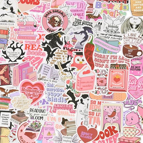 100PCS Book Stickers, Bookish Stickers for Kindle, Funny Cute Waterproof Sticker, Pink Aesthetic Sticker for Water Bottles Laptops Skateboard Luggage