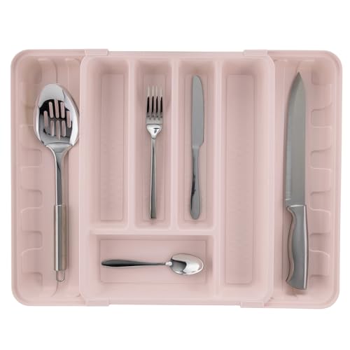 Minky Cutlery Drawer Organiser, Extendable Cutlery Sorter, Storage & Organisation, Utensil Holder, Kitchen Accessories, Cutlery Trays, Kitchen Tools & Gadgets, UK Made (Dusty Pink)