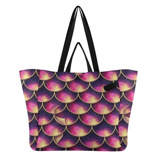 Wudan Tote Canvas Bags Thick Kitchen Grocery Bags Laundry Bag for Men Travel Kitchen Store Goth Black Red Scales, Stars Pink Blue Repeat Scales, One Size