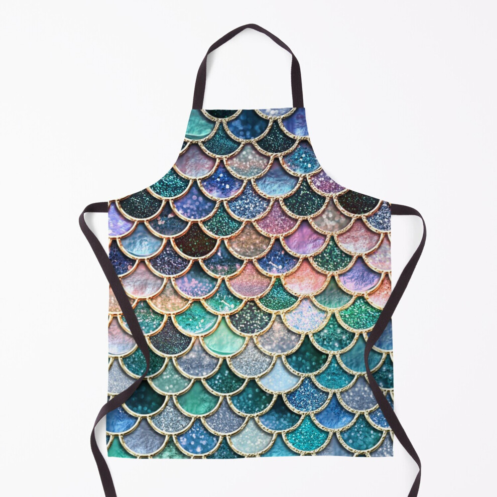 Teal, Silver and Pink Sparkle Faux Glitter Mermaid Scales Grill Aprons for Kitchen BBQ Chef