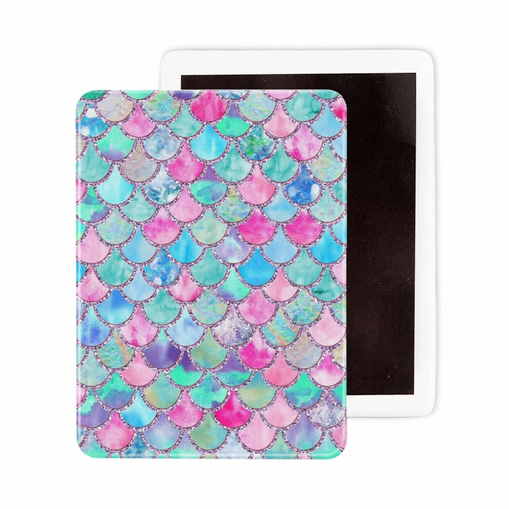 (Pink And Blue Watercolor Faux Glitter Mermaid Scales_47) Fridge Magnets Ceramic Refrigerator Magnet Handmade Graphic Artwork Kitchen Decorative Acces