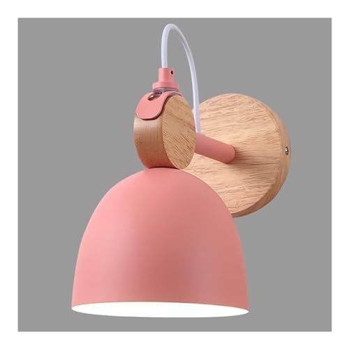FLXHSA Kids Room Fixture, Adjustable Nordic Indoor Bedroom Bedside Lamp, Colour Metal Shade ?10cm Wood Base, Hardwired Wall Lamps for Nursery(Pink Color)