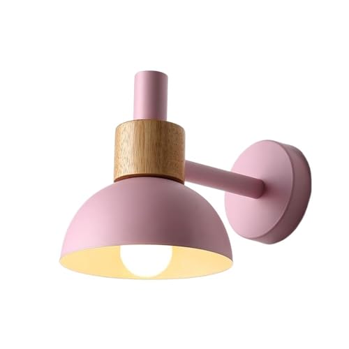 ZUOZUIYQ Wall Lamps Sconces Wall Sconce Wall Lighting Fixtures Metal Wooden Wall Sconce Minimalist Dome Shade Wall Lamp Wall Lighting Fixture for Boys Girls Kid's Room Cafe Restaurant-Pink(Pink)