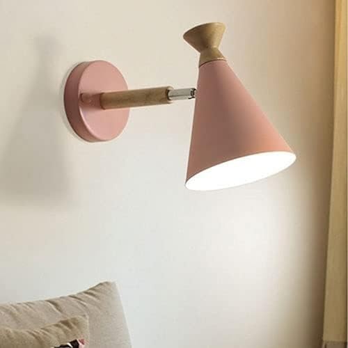 BDDCYWY Light Nordic Wall Sconce Wood Wall Light with Cone Metal Shade Modern Wall Mount Lamp Indoor Lighting Fixture Headboard Lamp, Children's Room Wall Lamps for Bedroom Bedside(Pink) Light