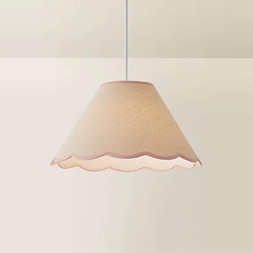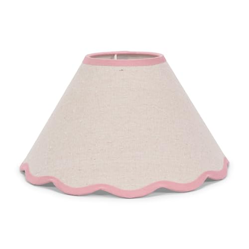 ValueLights | Large Easy Fit Natural Linen Tapered Light Shade with Pink Scallop Trim | Lamp Shades, Home Décor & Improvement Essential | 410mm Shade Width