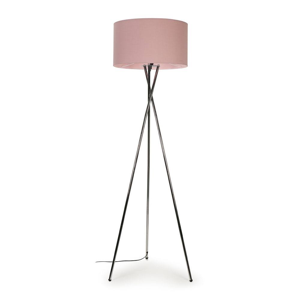ValueLights Camden Polished Chrome Tripod Floor Lamp with Pink Drum Lamp Shade in Dusty Pink