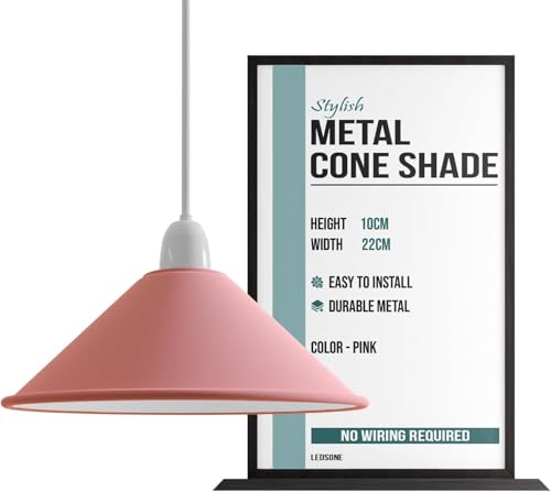 LEDSone Industrial Metal Lamp Shade 22cm Wide, 8cm Height,Vintage Pink Cone Pendant Light Cover, Modern Retro Ceiling Lighting for Kitchen, Dining Room Easy Fit Light Shade