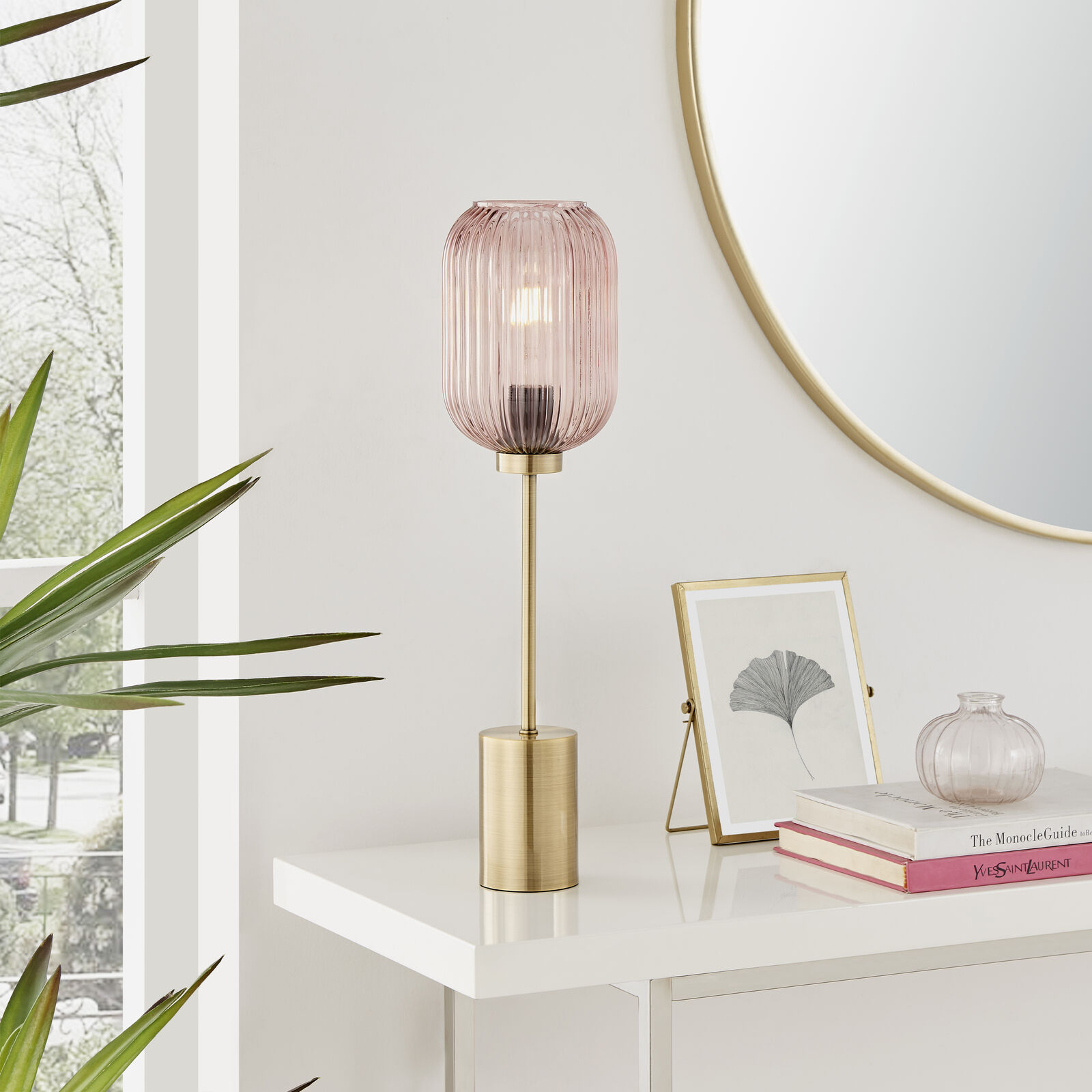 Homes Direct 365 Chrome Glass Table Lamp With Blush Pink Shade