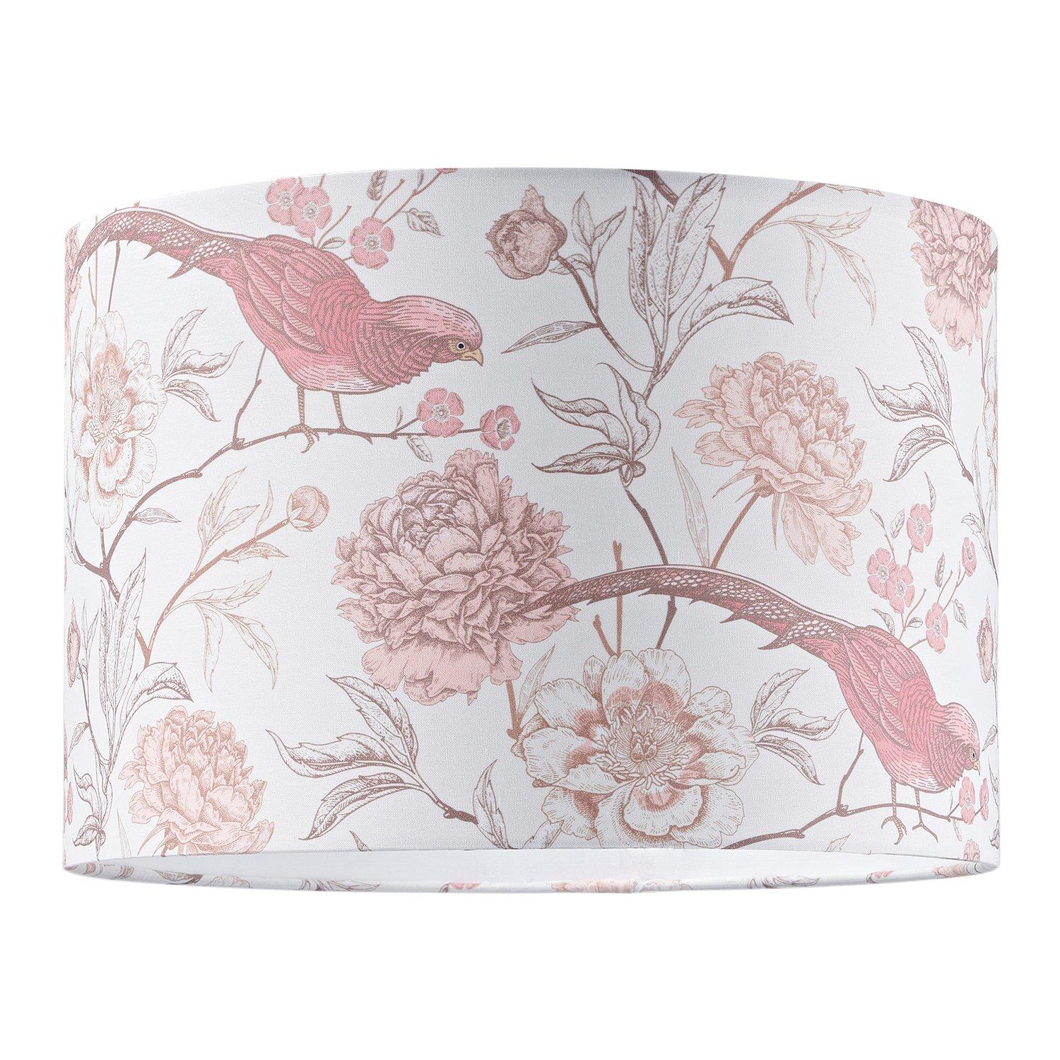 Traditional Cotton Lamp Shade with Pink Long Tailed Birds and Floral Decor