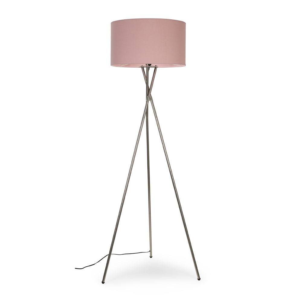 ValueLights Camden Brushed Chrome Tripod Floor Lamp with Pink Drum Lamp Shade in Dusty Pink