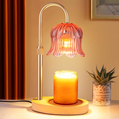Pink Floral Glass Shade Candle Warmer Lamp with Timer 2h4h6h8h Flameless Height Adjustable for Any Candle Dimmer Brightness Control Melts Wax Faster When Brighter Ideal with 2 Bulbs