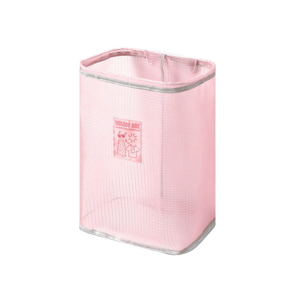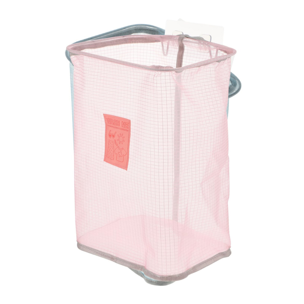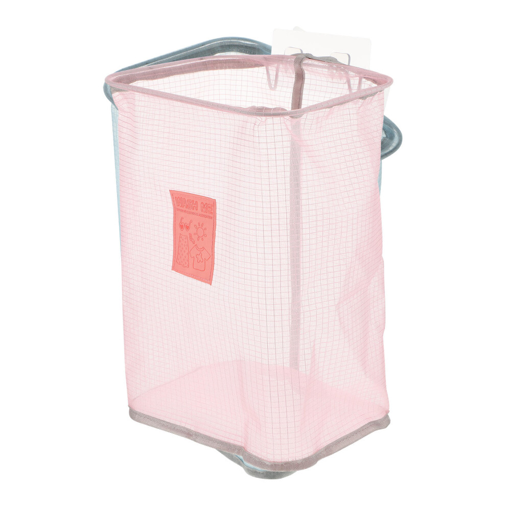 (a-Cloth Hanger Pink) Folding Laundry Basket Organizer For Dirty Clothes Bathroom Clothes Mesh Storage Bag Household Wall Hanging Basket Frame Bucket