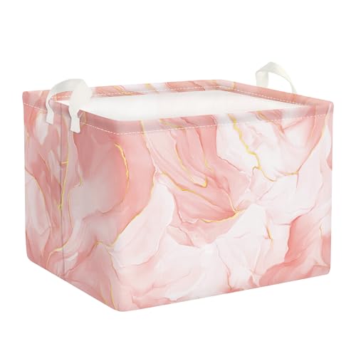 Clastyle Marble Laundry Hamper Collapsible Clothes Storage Basket Waterproof Lady Girls Toy Box for Bedroom Bathroom, Pink, 40 * 30 * 30 cm