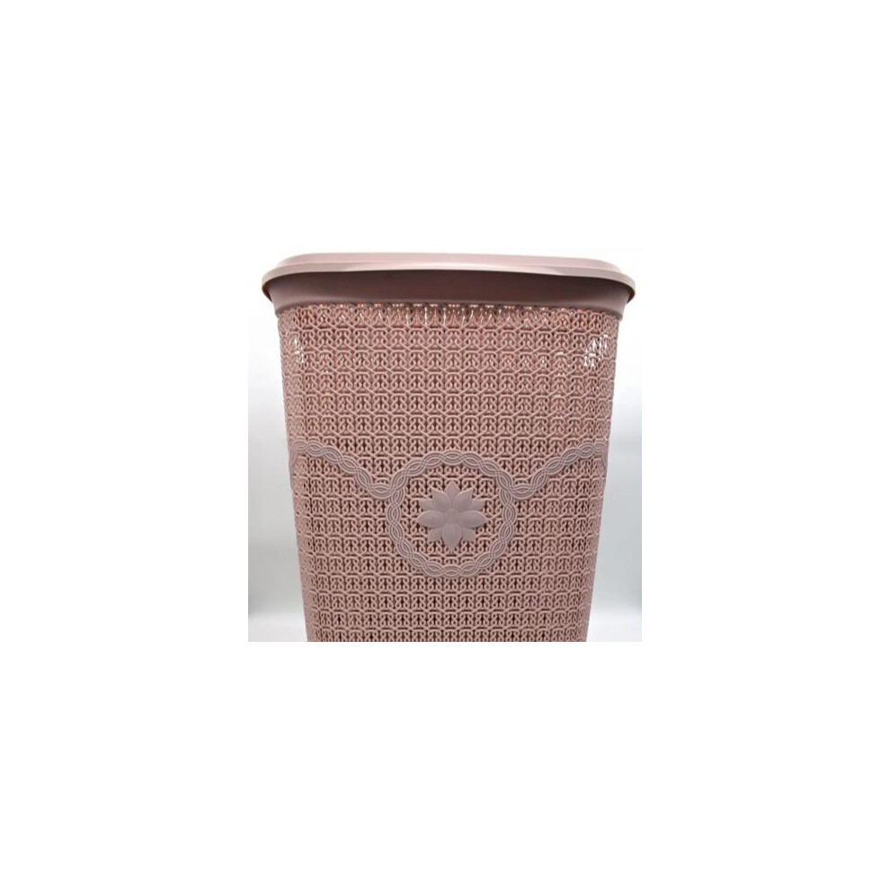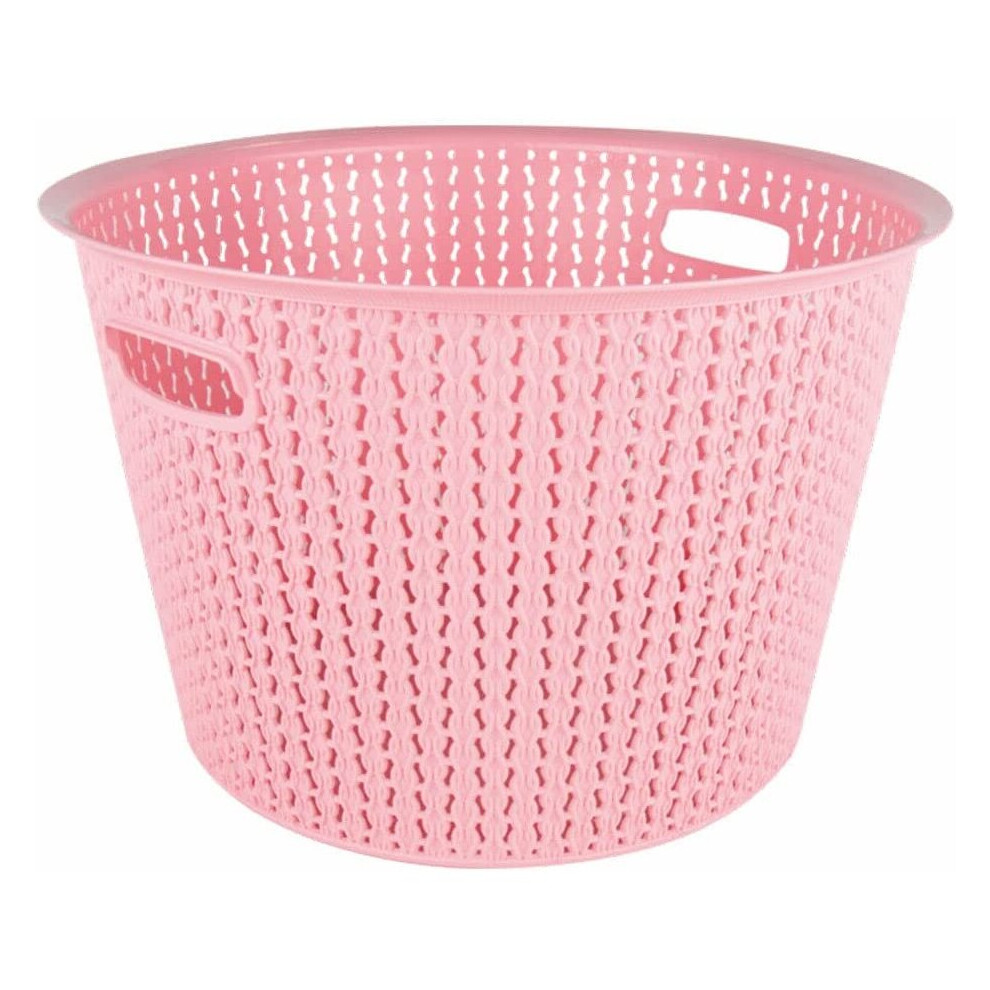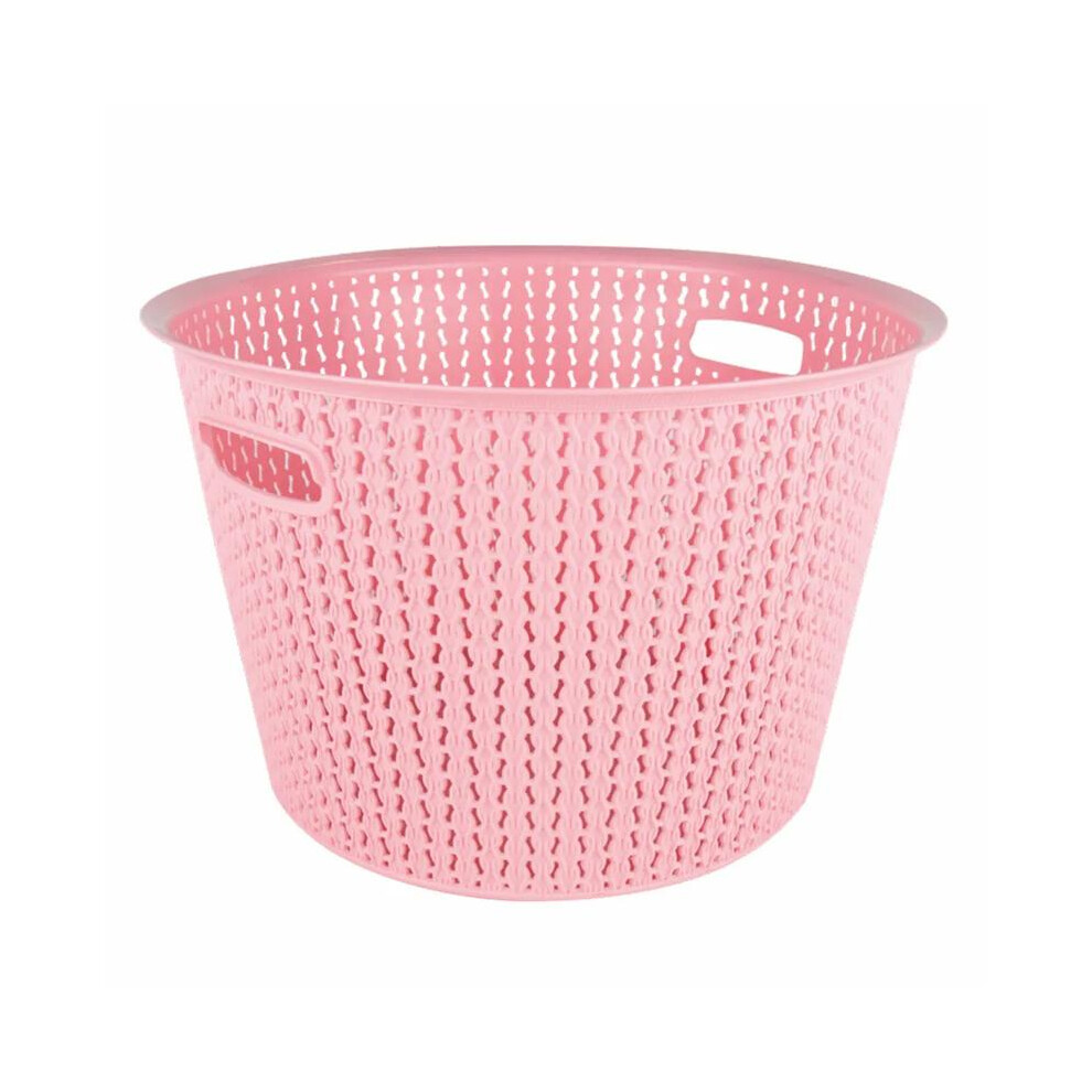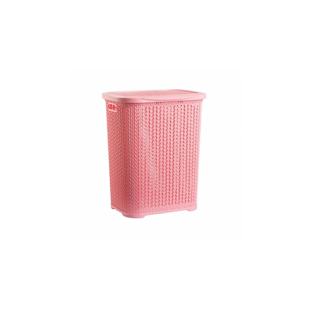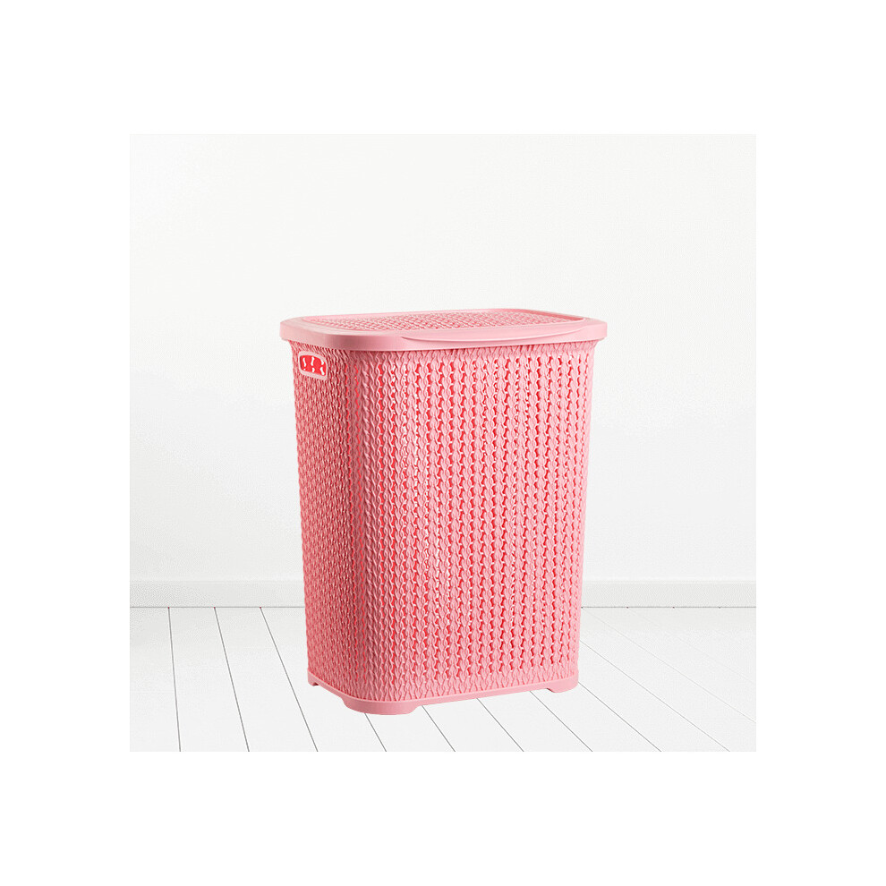 (Pink) 65L Large Plastic Laundry Basket Clothes Washing Bin Hamper Knitted Rattan Organiser