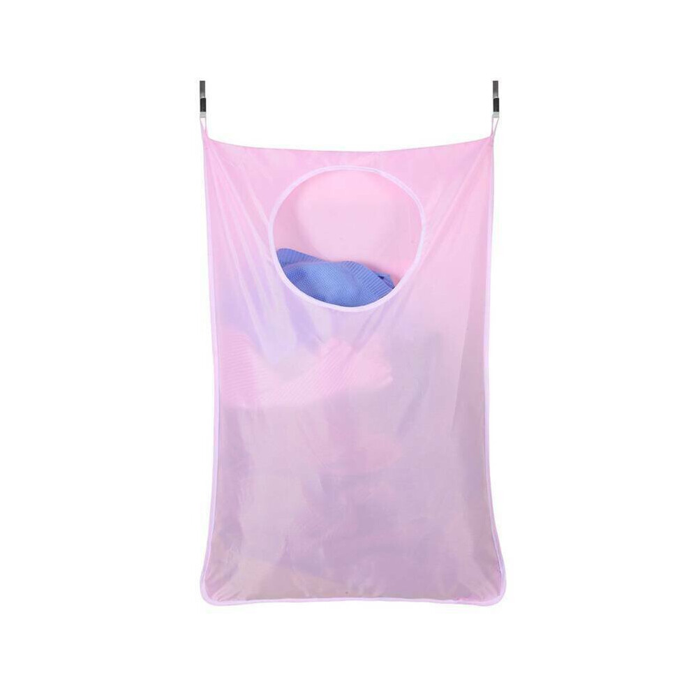 (Pink) Laundry Storage Basket Washing Storage Organiser Dirty Clothes Bag With Hooks