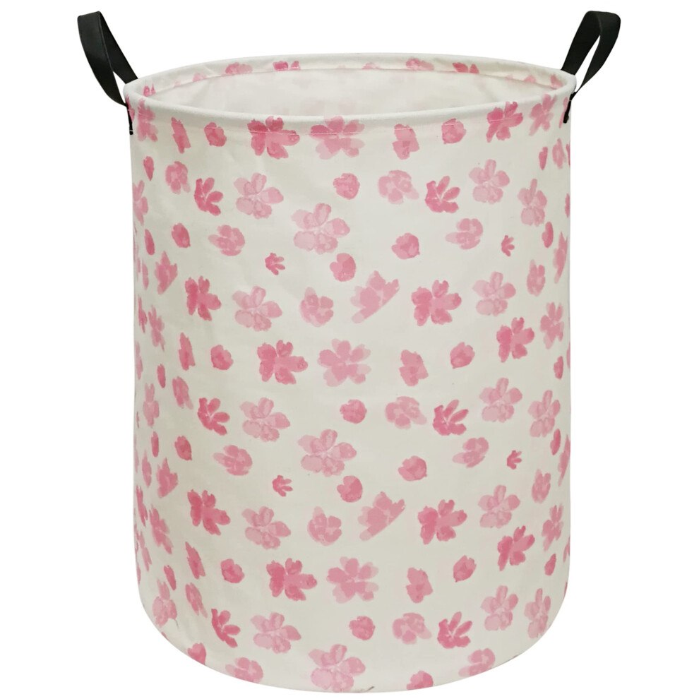 ACMUUNI 19.7 Inch Pink Flower Canvas Clothes Basket Laundry Hamper with Handles Storage Basket Perfect for Kids Boys Girls Toys Room Bedroom Nursery
